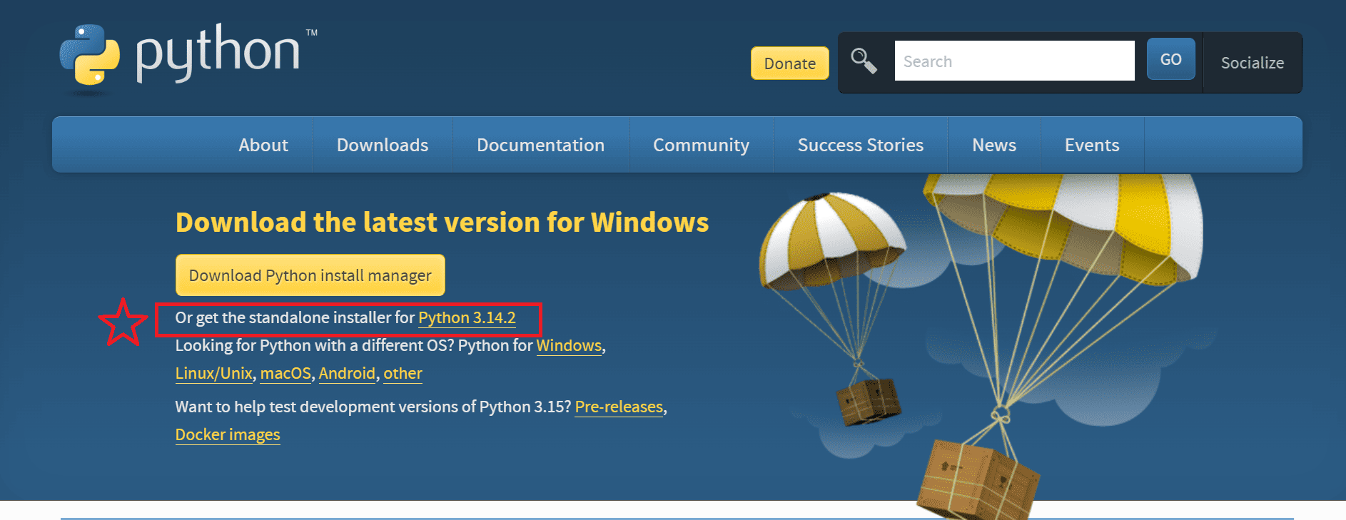 2.點選Or get the standalone installer for Python XXX(最新版本),即開始下載Python