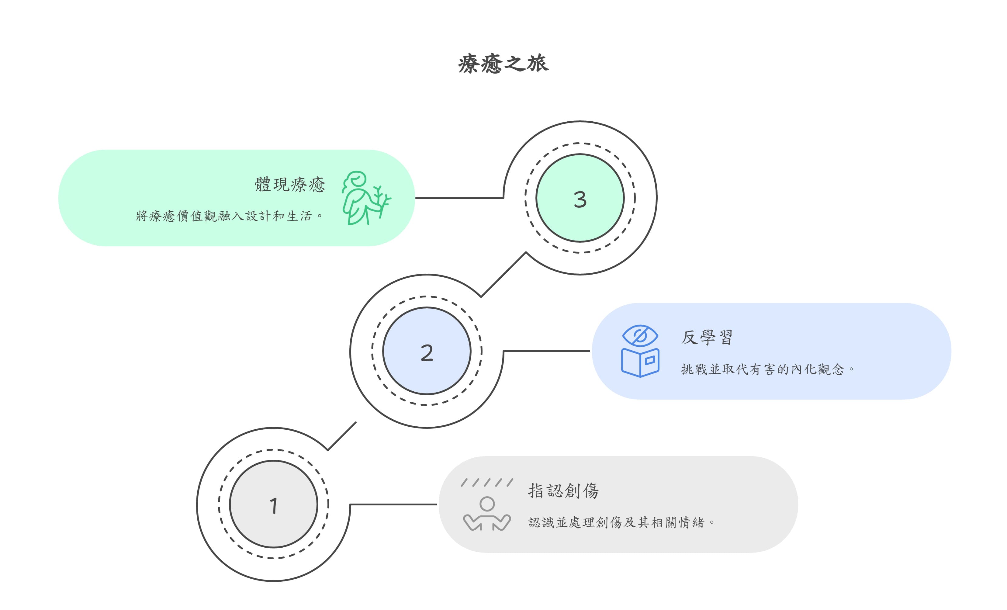 - 為了支持療癒,我們需要學習和反學習什麼?